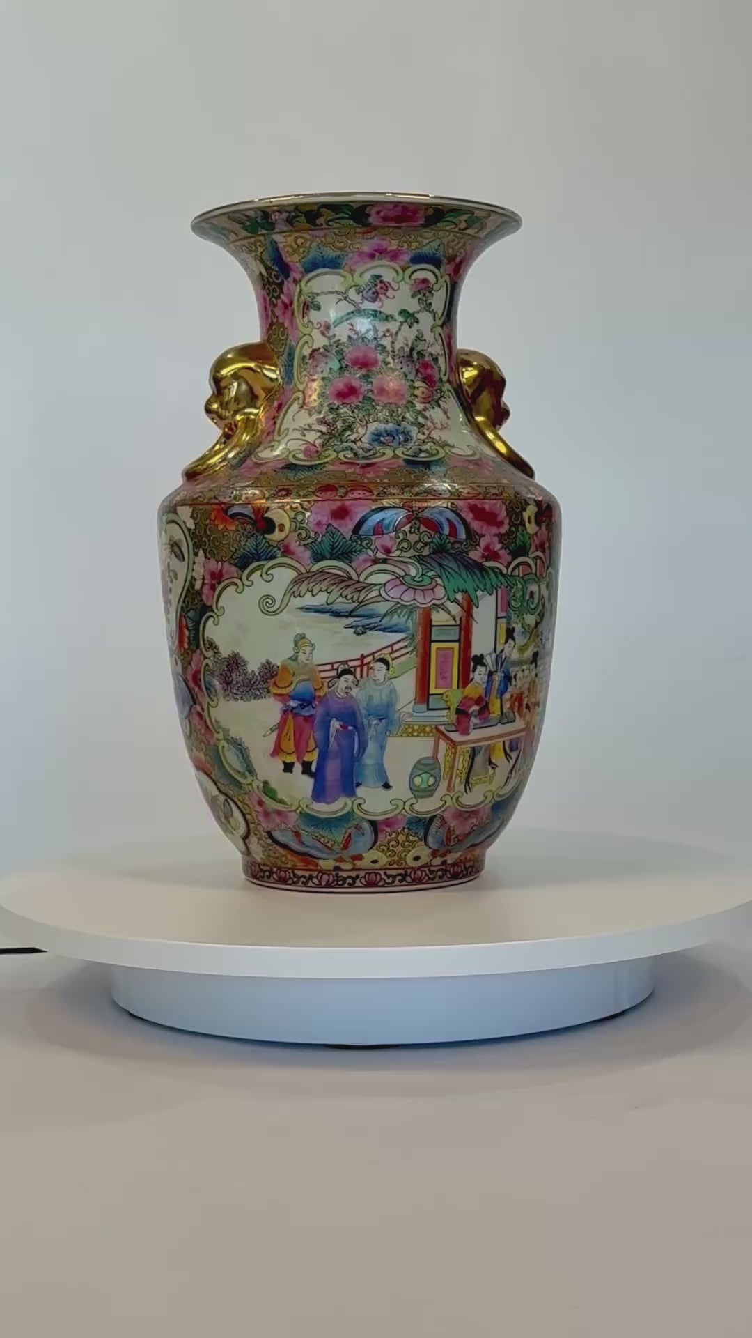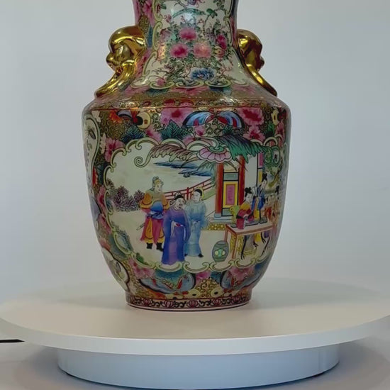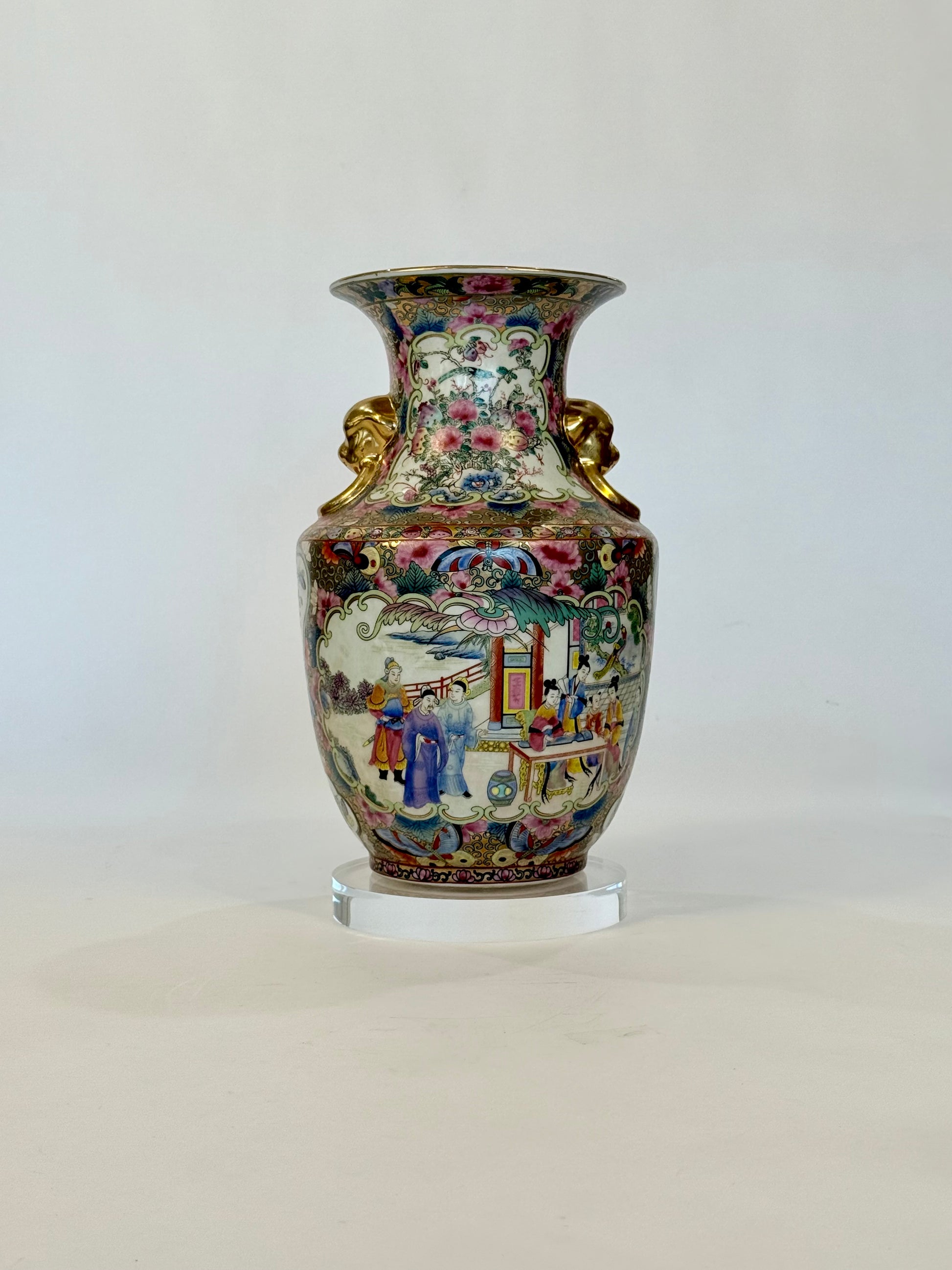 Antique Chinese Famille Rose Porcelain Vase with Elephant Handles