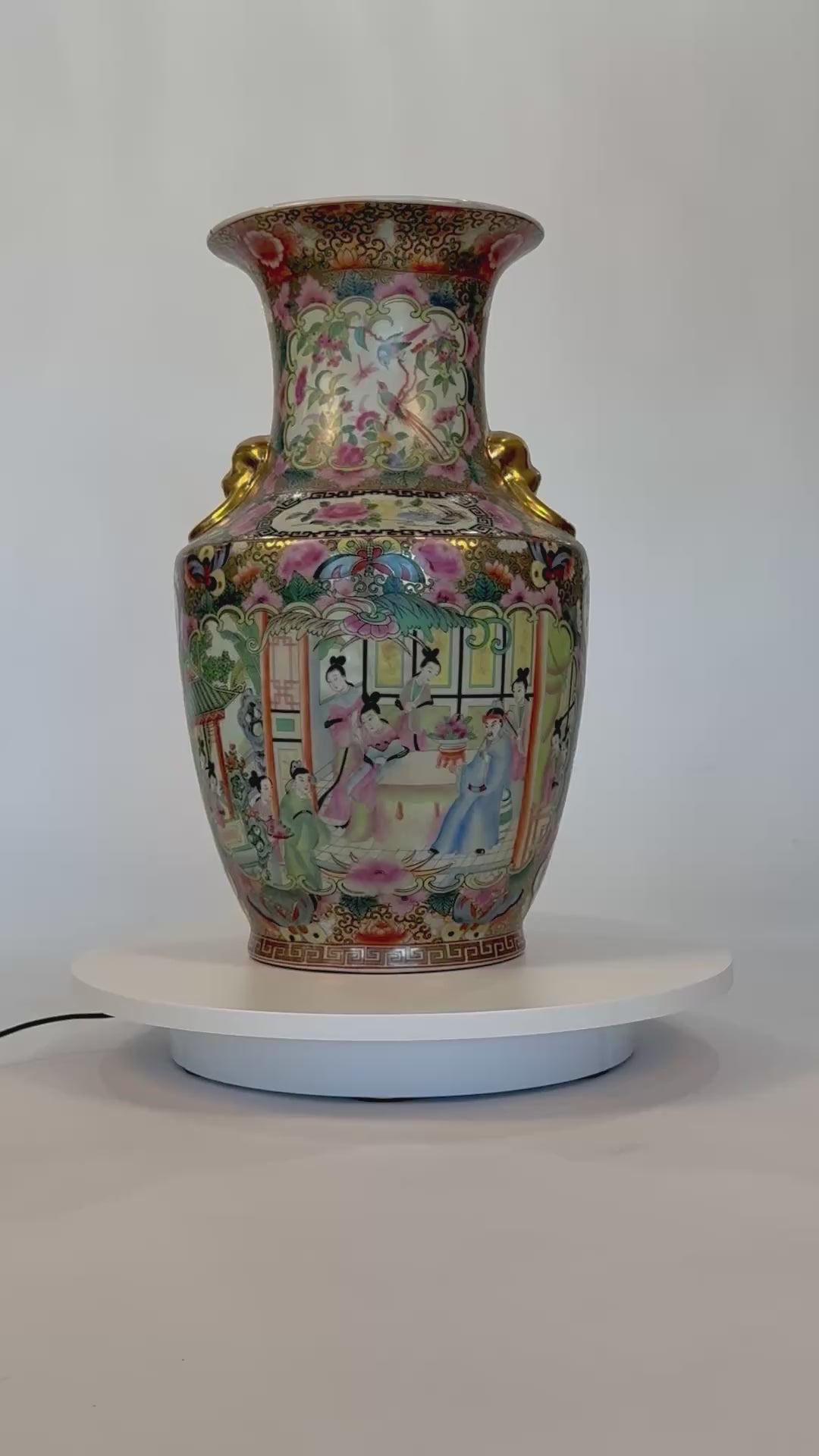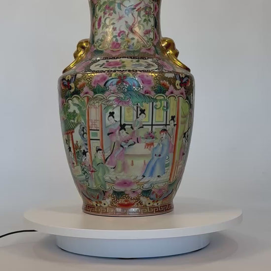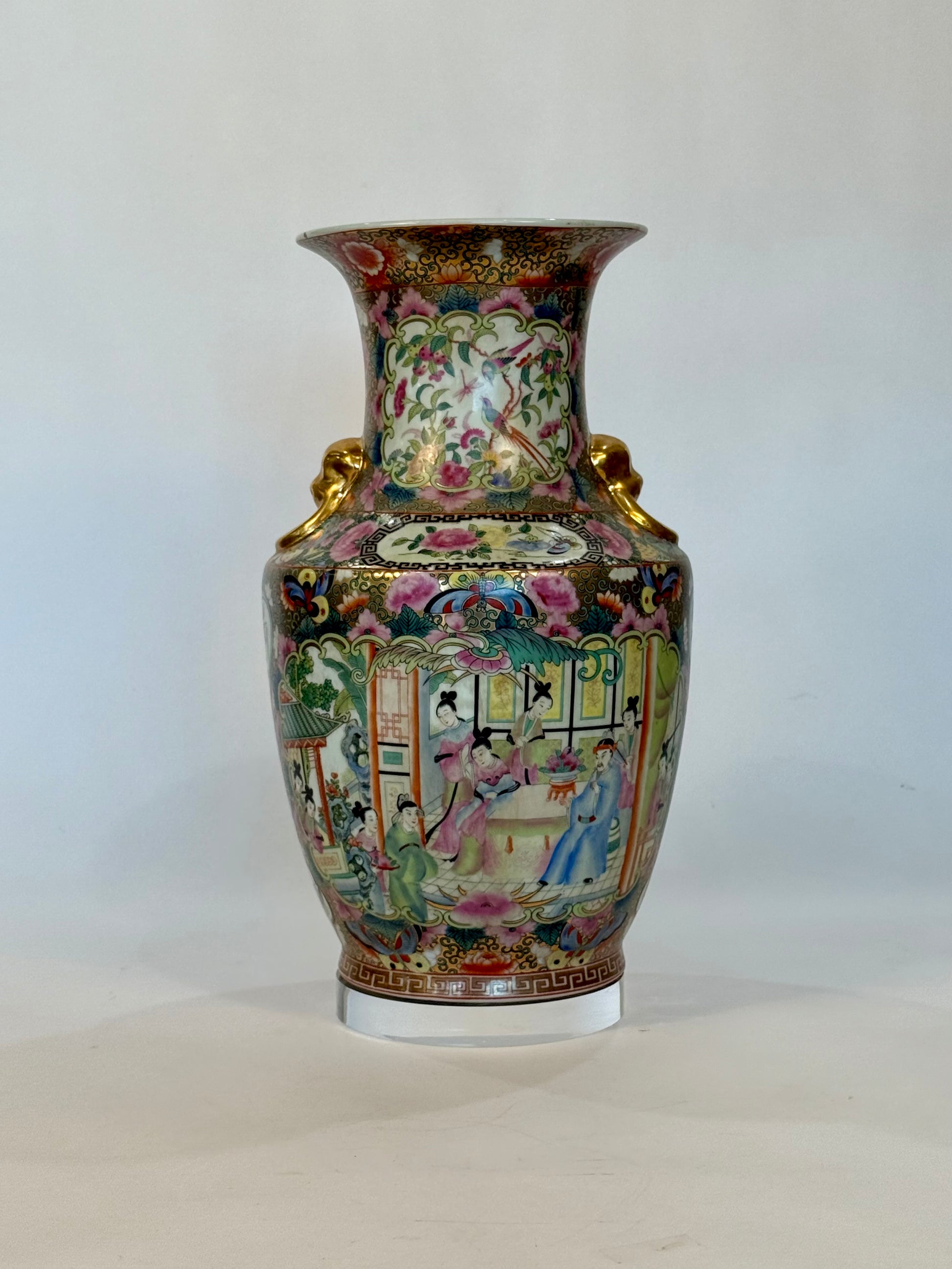 Antique Large Chinese Famille Rose Vase with Gilded Handles