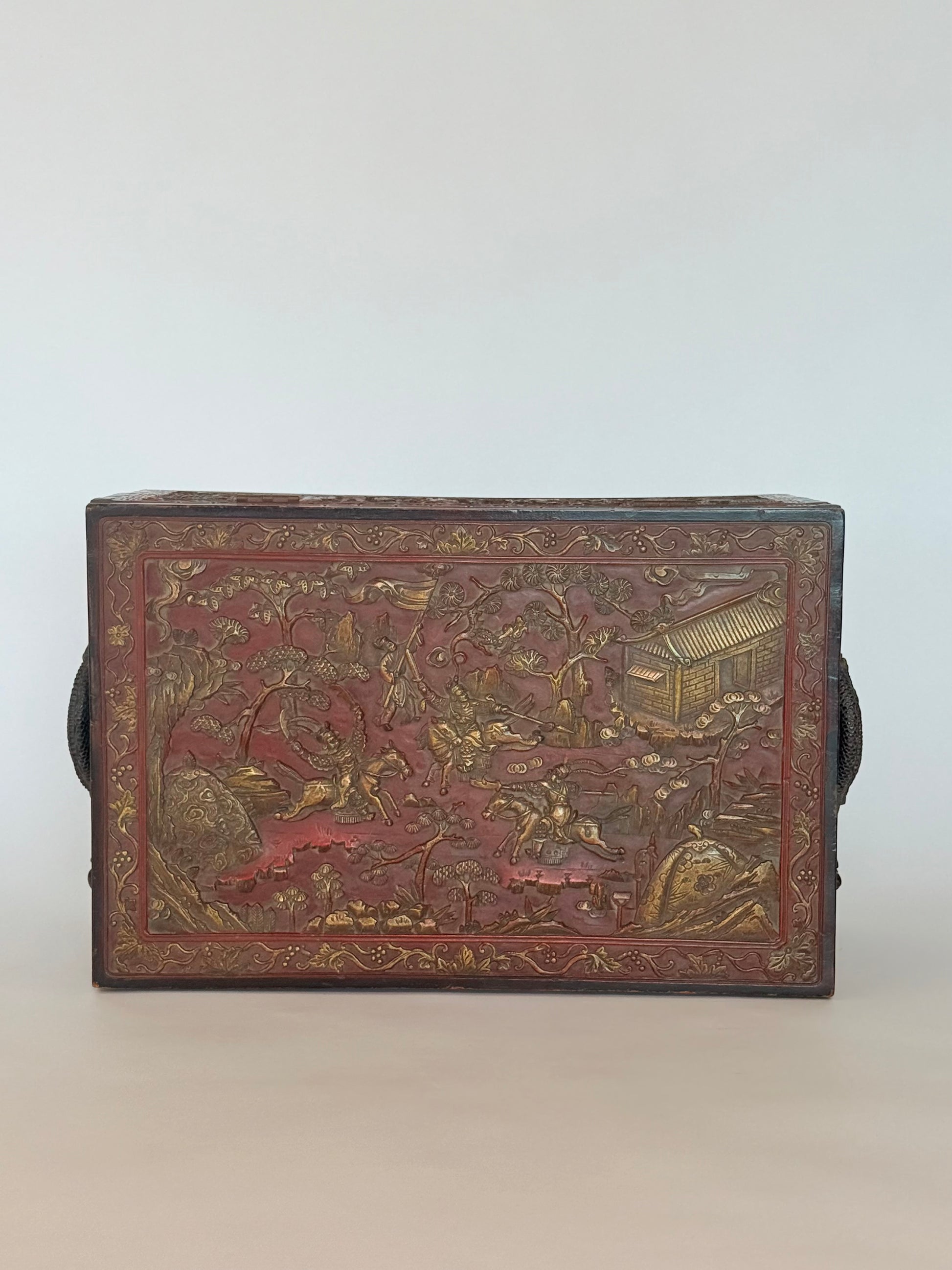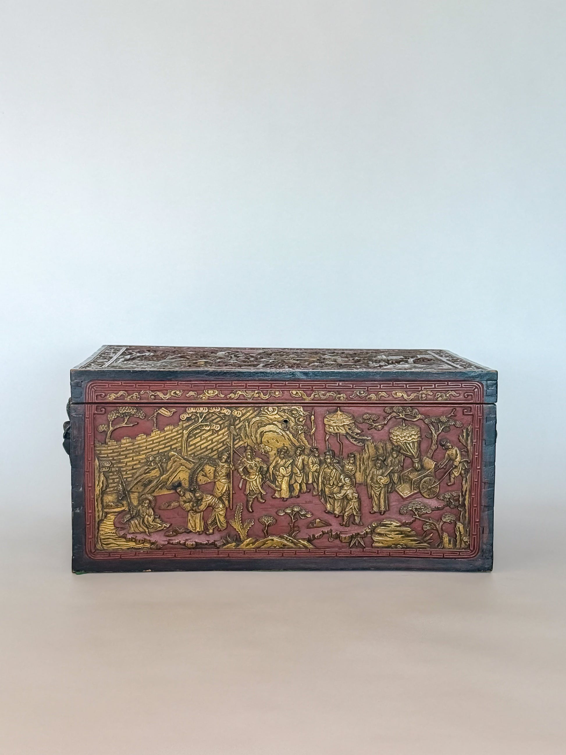 Camphor wood chests were primarily used in China for storing valuables. The red lacquer, along with the gold accents, symbolizes prosperity and good fortune in Chinese culture.