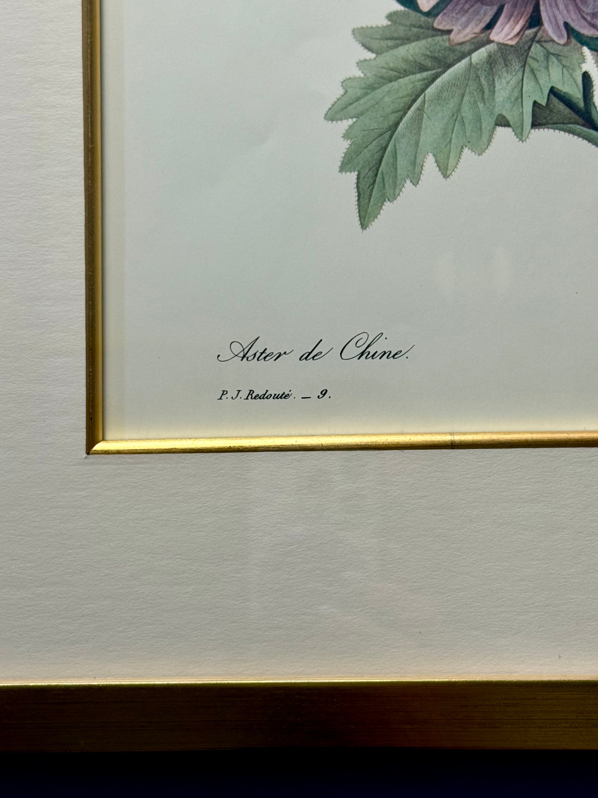 Pierre-Joseph Redoute was a renowned Belgian painter and botanist, celebrated for his exquisite watercolor paintings of flowers. This print is a "Aster Chinensis".