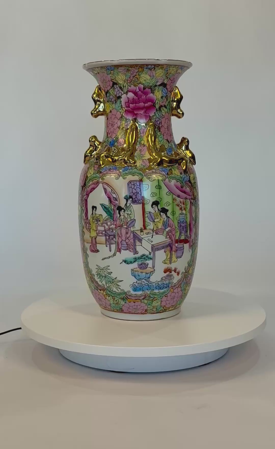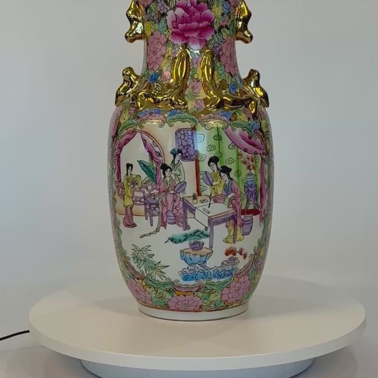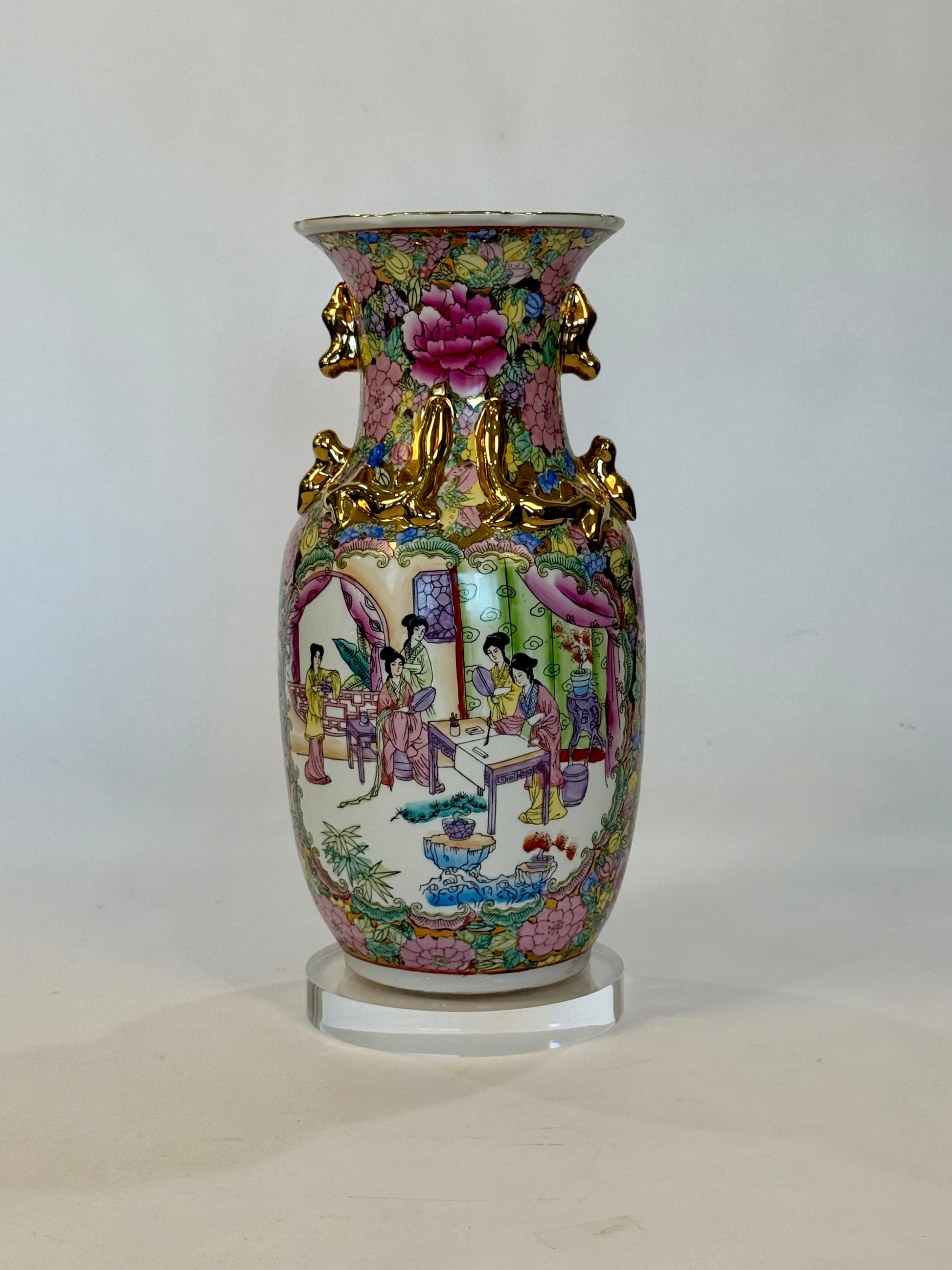 Vintage Chinese Famille Rose Porcelain Vase with Gold Accents
