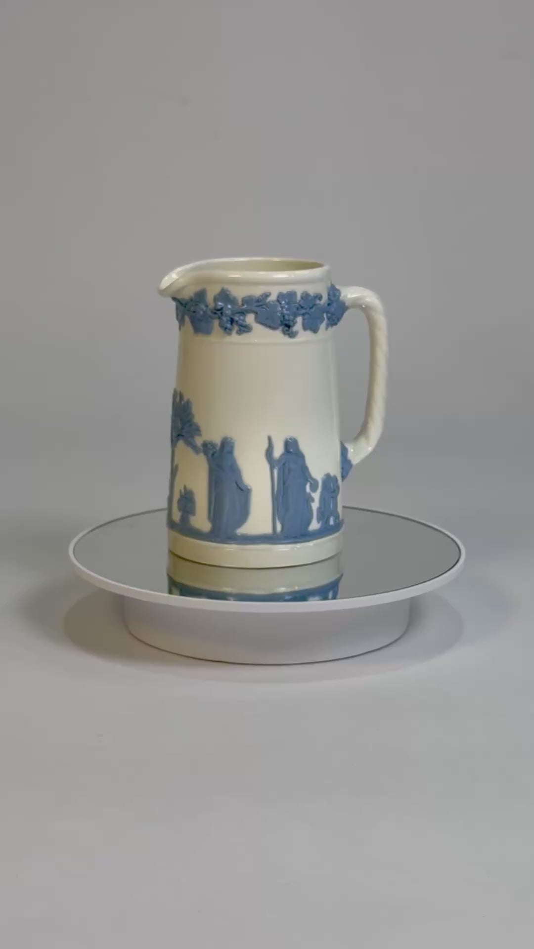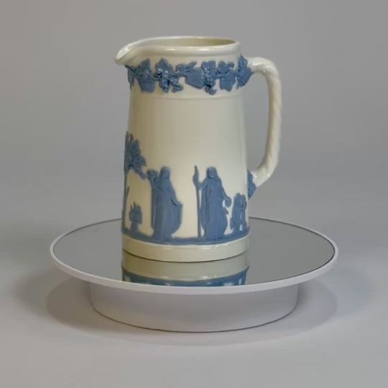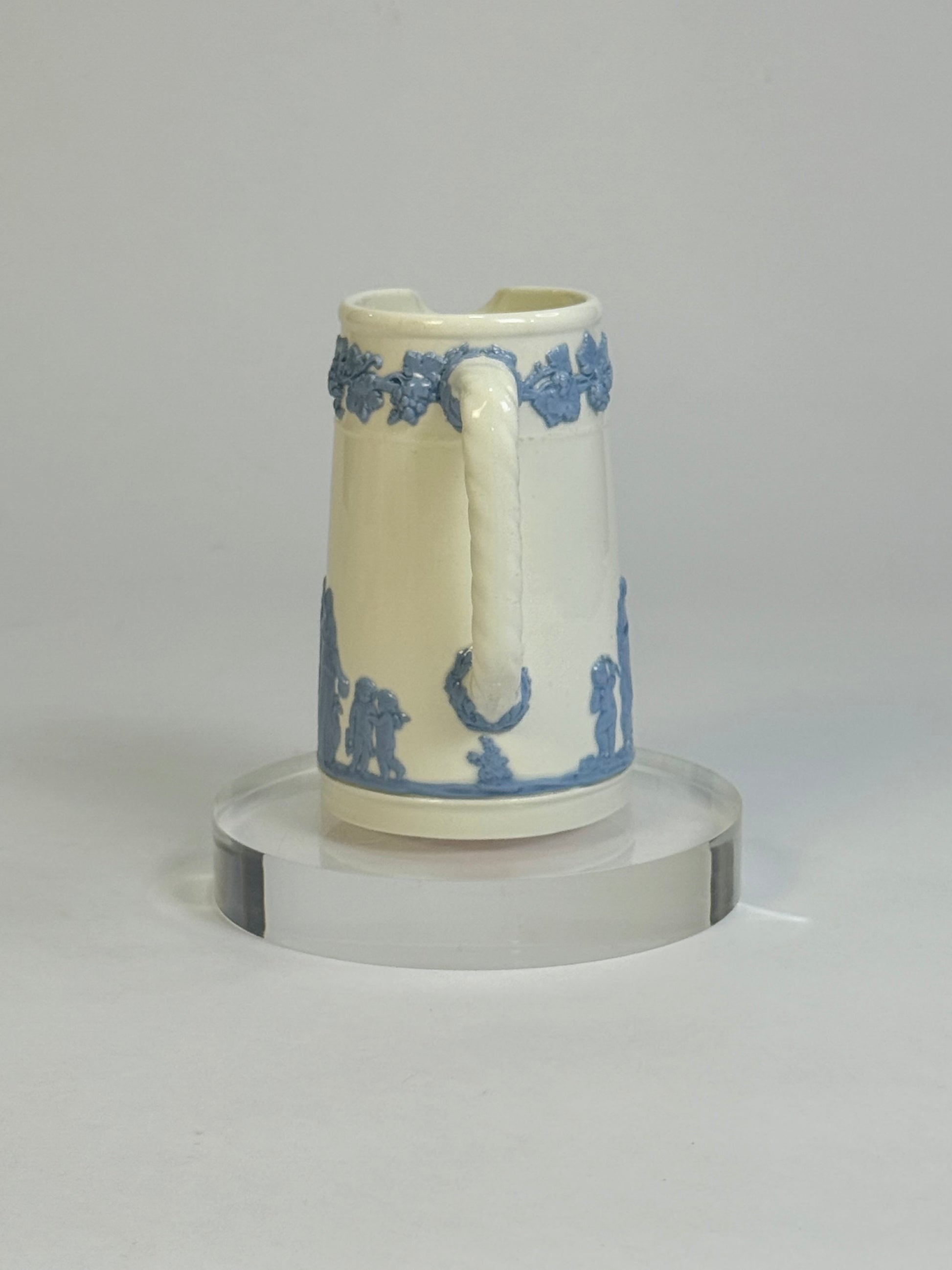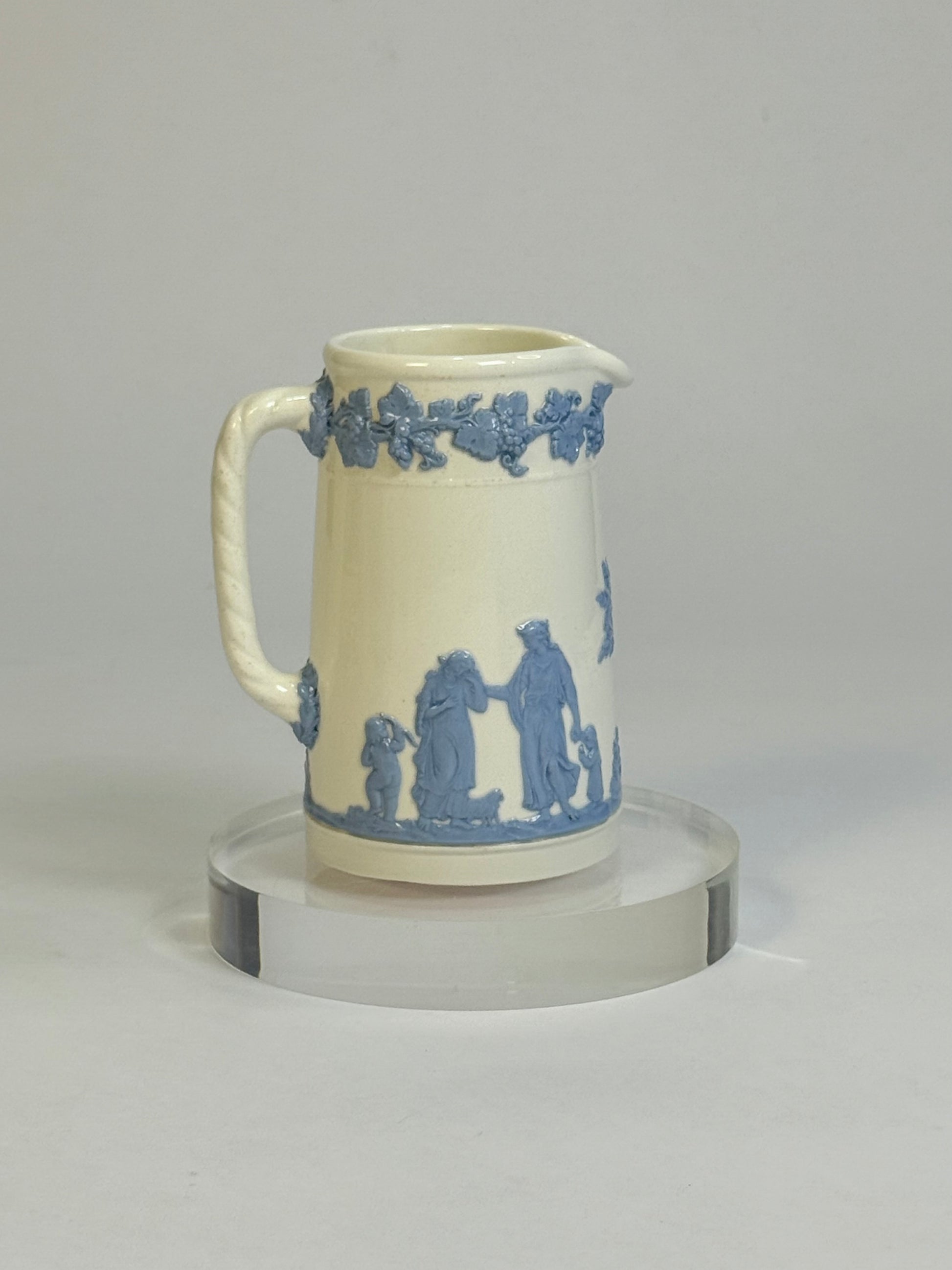 A classic example of Wedgwood’s enduring craftsmanship, this Queensware pitcher features the signature cream-colored body with delicate embossed relief in the refined neoclassical style. Produced in England, it embodies the timeless elegance that made Wedgwood a hallmark of fine English ceramics. A distinguished addition for collectors of Wedgwood or those seeking a refined accent for a traditional table or display. (Early 1900's)